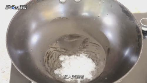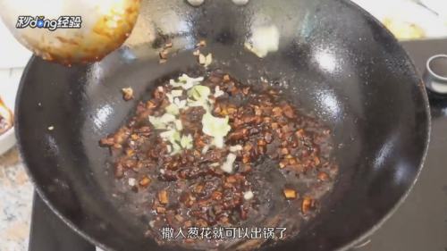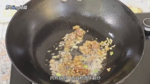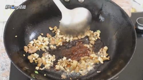 3起锅烧油,放入姜爆香,倒入肉糜翻炒。