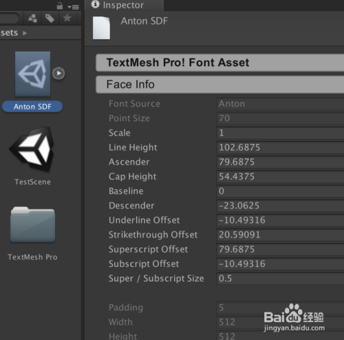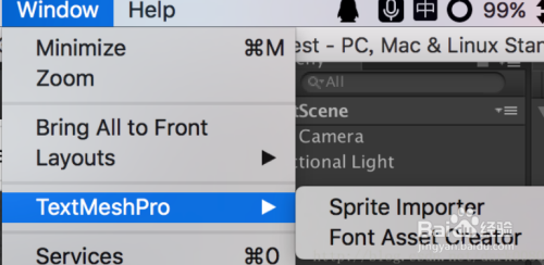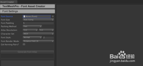 第一步将Asset Store导入Textmesh pro,之后选择Window TextMeshPro Font Asset Creator: