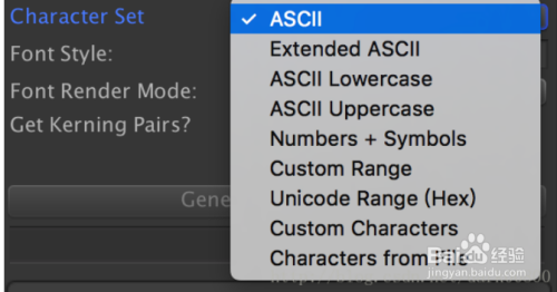 Character Set是代表选择文字来源,通常使用是ASCII和Characters from File