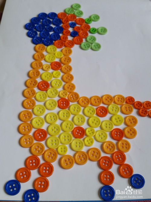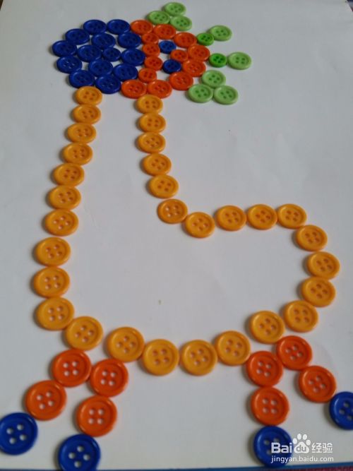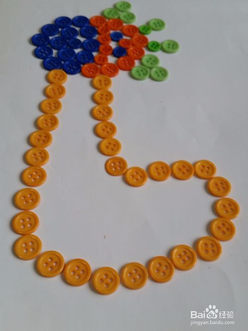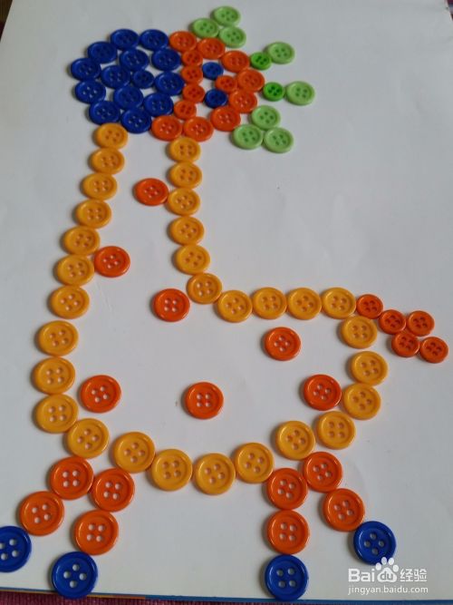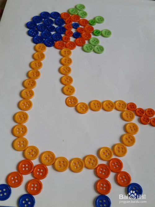我们再用桔色的纽扣往下粘贴出小鹿的长脖子