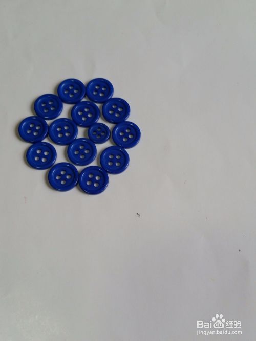 我们先用蓝色的纽扣拼出小鹿的鼻子和嘴巴的部分