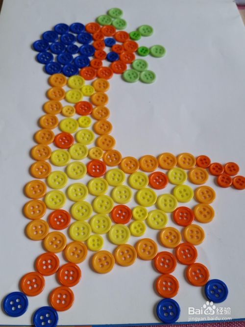 今天跟小编一起用黄色,桔色,还有绿色的纽扣拼一只可爱的小鹿吧。