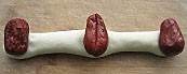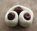 取洗净的大枣三个,分别放在面胚长条的两端和中间。
