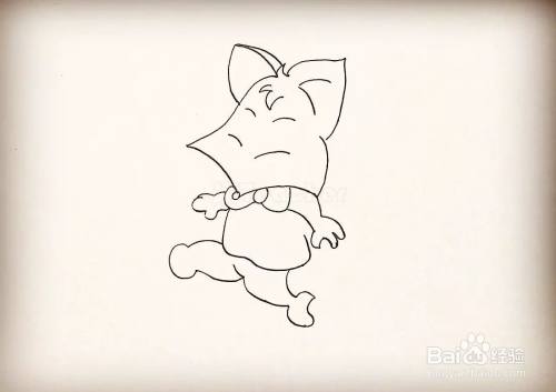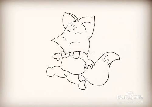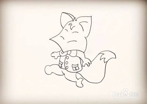 再画出它的腿和脚.这是一只奔跑的小狐狸。
