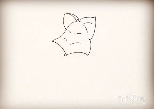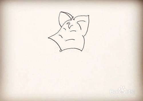 首先画小狐狸的脸颊.中间一个小圆圈.两条弧线连接。