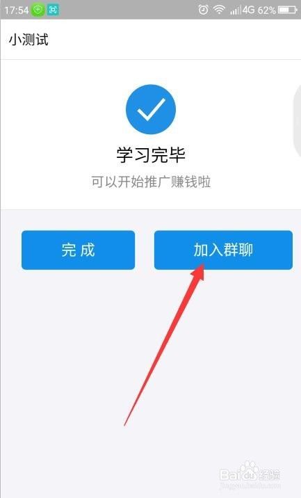 第五,将小测试做完,点击选择正确的答案,最后点击”提交“按钮。接下来点击”加入群聊“,可以跟大家互相学习技巧。