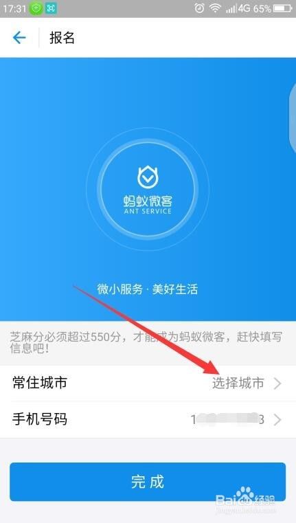 第三,出现服务协议,必须点击”同意“,才能继续。进入后点击选择城市,选择自己所在的城市。
