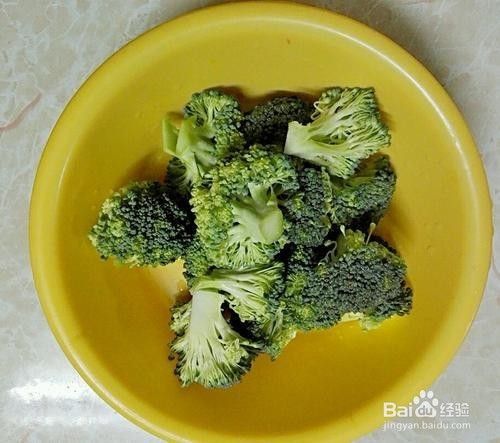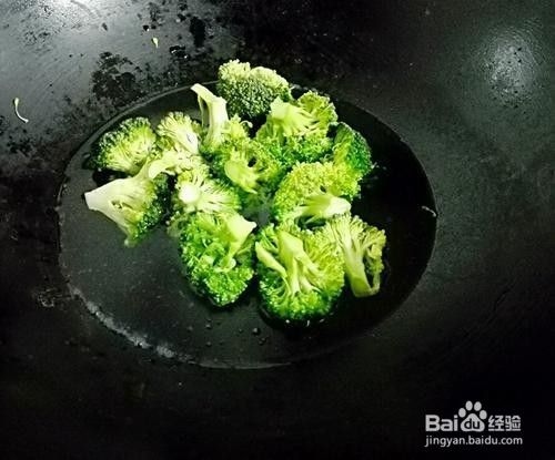 4.锅中烧沸水,淋油,放盐把西兰花放进去焯熟