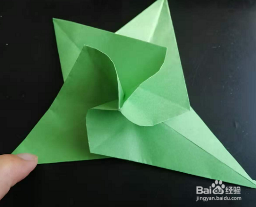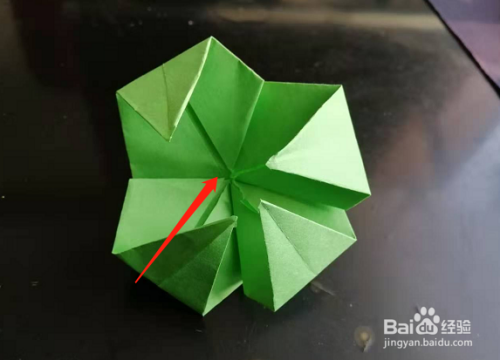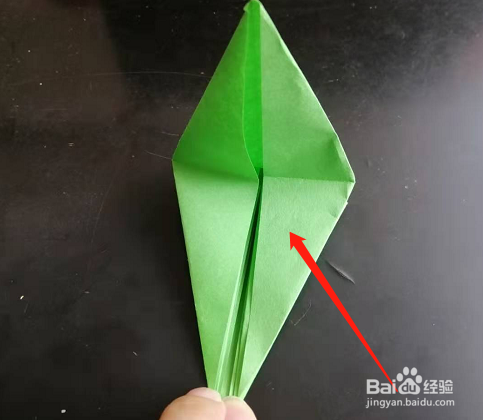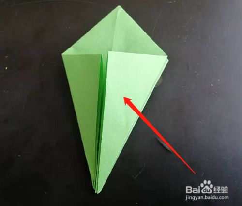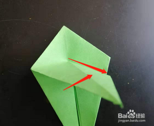 再沿着刚才的折痕折出立体效果来,如下图所示。