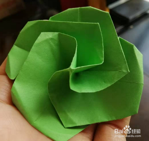 最后将花边整理成圆弧这样玫瑰花就折叠好了。