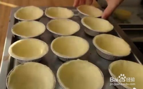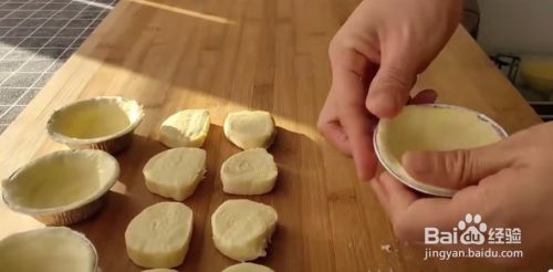 21,再依次把面皮放到蛋挞磨具里,按平按好