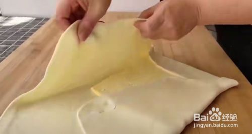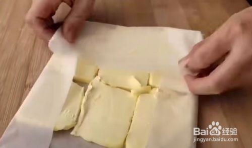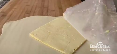11,把黄油擀薄擀平,放入冰箱冷藏1小时