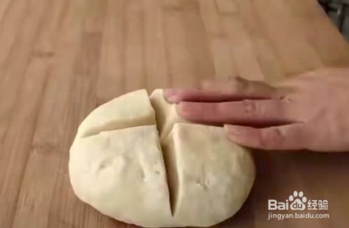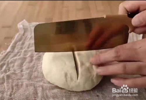 7,准备一条干净的湿纱布,放上揉好的面团,用刀切一个十字形,不用切断