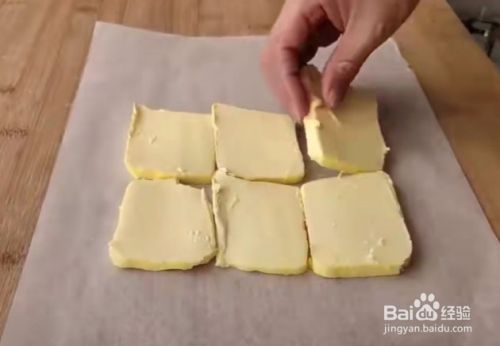 9,准备一张油纸,把剩下的150g黄油铺在油纸中间
