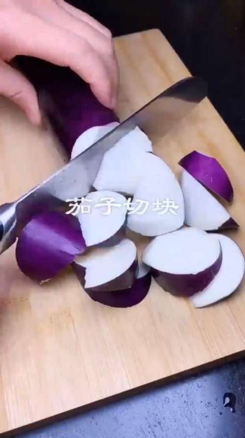 茄子切块。