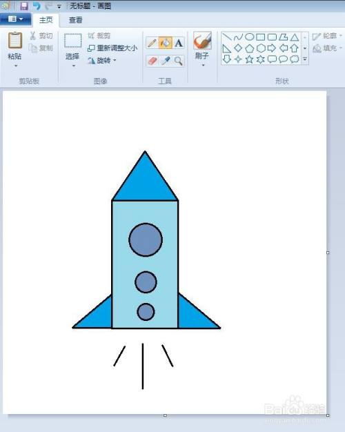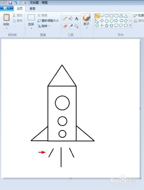 第五步:在画好的火箭形状下方,画出三条辐射状的直线。