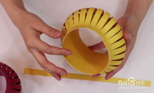 在灯笼的顶部粘上长条;