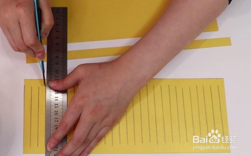 继续沿画好的直线裁开,注意两头不要划;