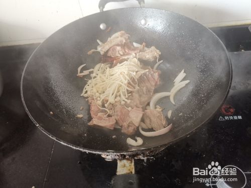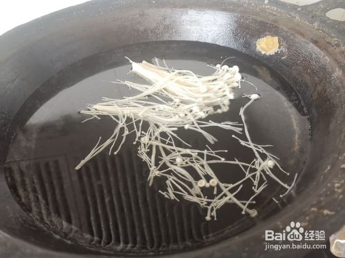 然后下入金针菇继续翻炒后,添加清水炖煮