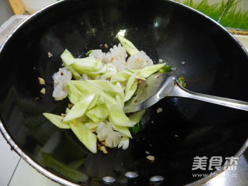 然后锅里加入水烧开倒入鱿鱼过一下水