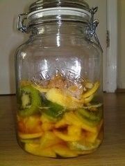 在做之前,要确定好糖和水果的比例,因为这很重要,假如糖加多了,菌种大量增殖却不能发酵水果,如果水果加多了,菌种无法短时间内增殖,达不到效果。做之前,请在百度上搜集相关信息。
