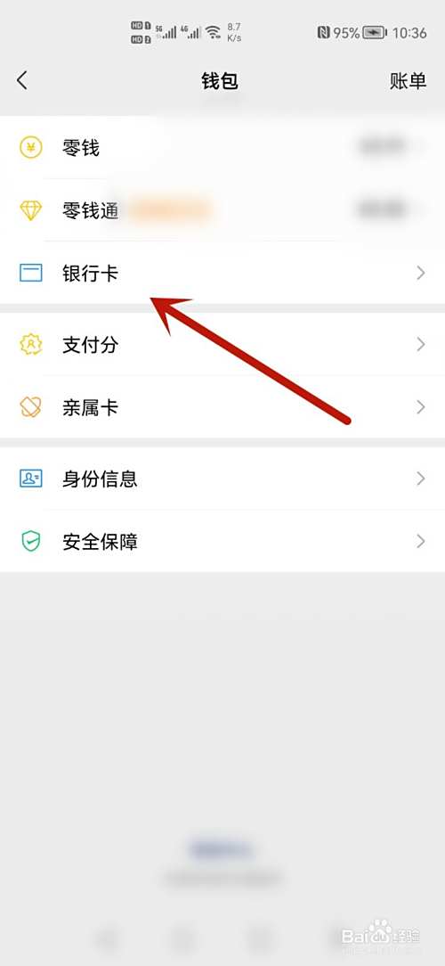 在进入的界面,点击银行卡选项进入。
