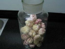 把处理好的蒜用清水泡一夜,捞出晾干。