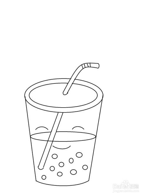 在杯子上画出眼睛和嘴巴,把吸管画完整,画出里面的椭圆形,如图所示。