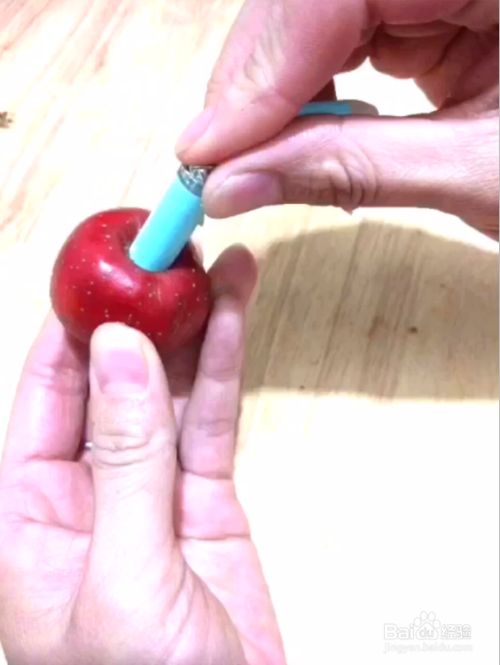 然后用笔筒从中间穿过去,去核。如果有去核器的话也可以用去核器。
