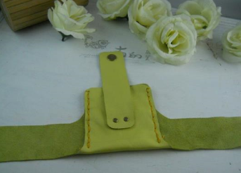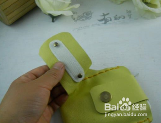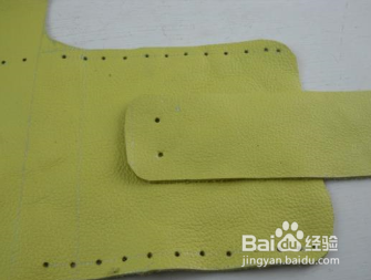 在另一块小皮子上打孔,用铆钉钉在大皮子上