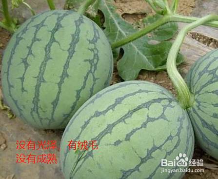 成熟的西瓜表面光滑,纹理清晰,花色深浅分明且颜色有光泽,如果瓜皮表面还有绒毛,那说明这个瓜还没成熟。