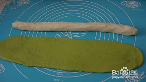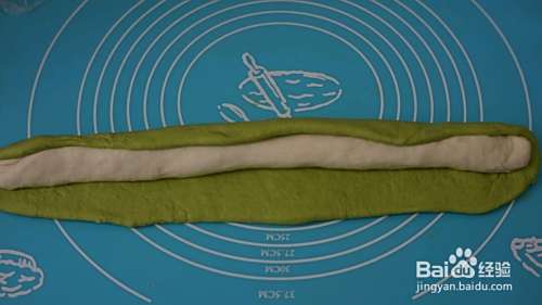 用绿面把白色包起来,搓成粗细均匀的圆柱