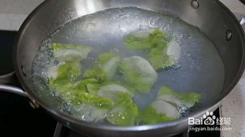 清水入锅,加一汤匙盐防粘,水开后,放入水饺,等水饺浮上来就熟了