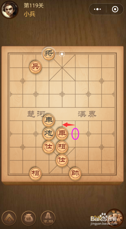 微信小游戏中国象棋楚汉争霸第119关小兵的闯关技巧如下。