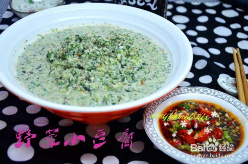 野菜小豆腐是母亲的拿手菜,我从小吃到大也从没有感觉厌烦的一款美食。提前一天在家把黄豆用清水浸泡上,第二天再用家里的小石磨磨成“豆腐沫子”(黄豆和水磨成的豆渣土语)。再去野地里挖取一些当季的野菜回来,坐在院子里摘洗干净,用水清洗了一遍又一遍,直至认为干净了才肯作罢。大锅烧开水,将野菜悉数下入滚水锅中烫煮透,再捞出过凉水,用菜刀细细切成碎末,再入清水浸泡数小时,至到将野菜中的有毒成分浸泡干净,方可下的锅中和已经煮熟透了的豆腐沫子一起搅拌均匀,调好咸口即为春季最有营养的美食:野菜小豆腐。每次我都能吃上三四碗小豆腐,喝着里面的汤在吃着里面的菜,别提有多过瘾了!