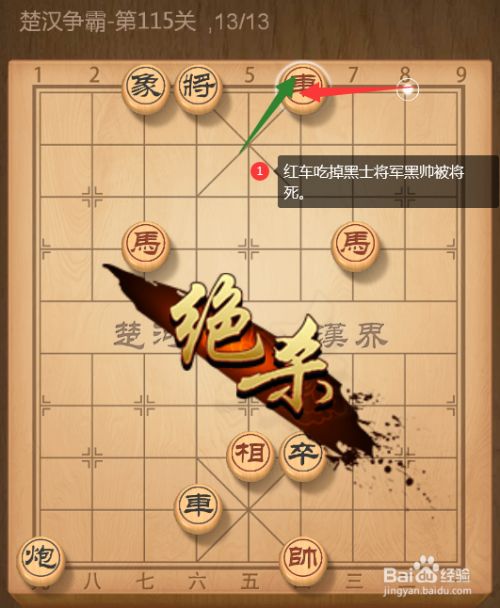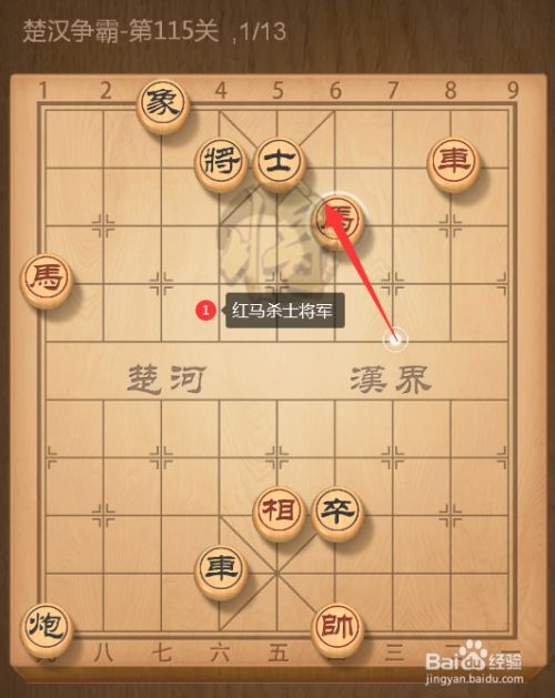 第115关通关共需13步,黑方车炮兵已经控制了红帅,所以此关的难度还是蛮大的,小伙伴们请跟着我下面图上步骤走棋。