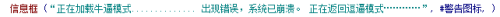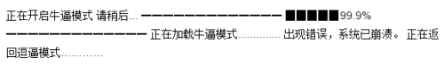信息框 (“正在加载牛*模式.............. 出现错误,系统已崩溃。 正在返回逗逼*式…………”, #警告图标, )