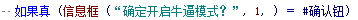 如果真 (信息框 (“确定开启牛*模式?”, 1, ) = #确认钮)