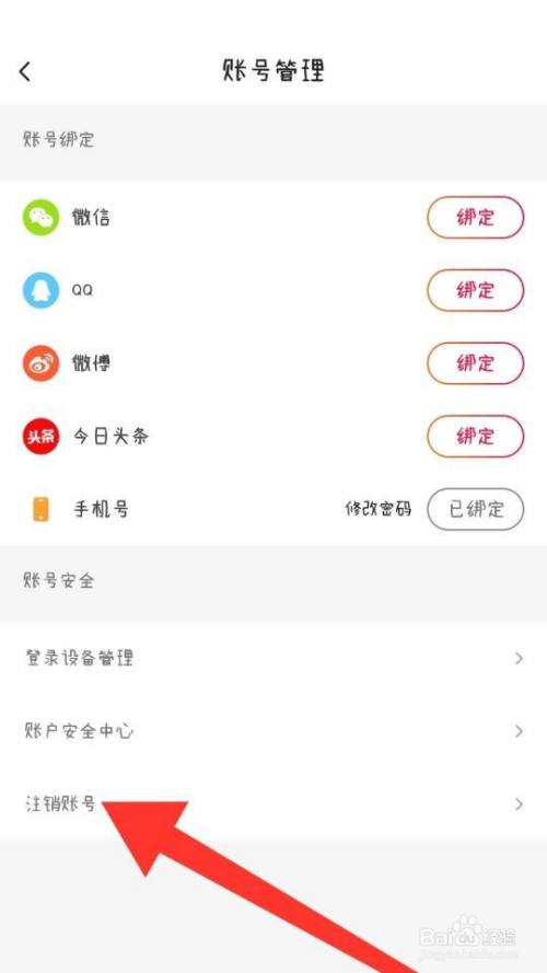 在设置页面点击下方的“账号管理“,进入新的页面后,点击最底下的”注销账号“。