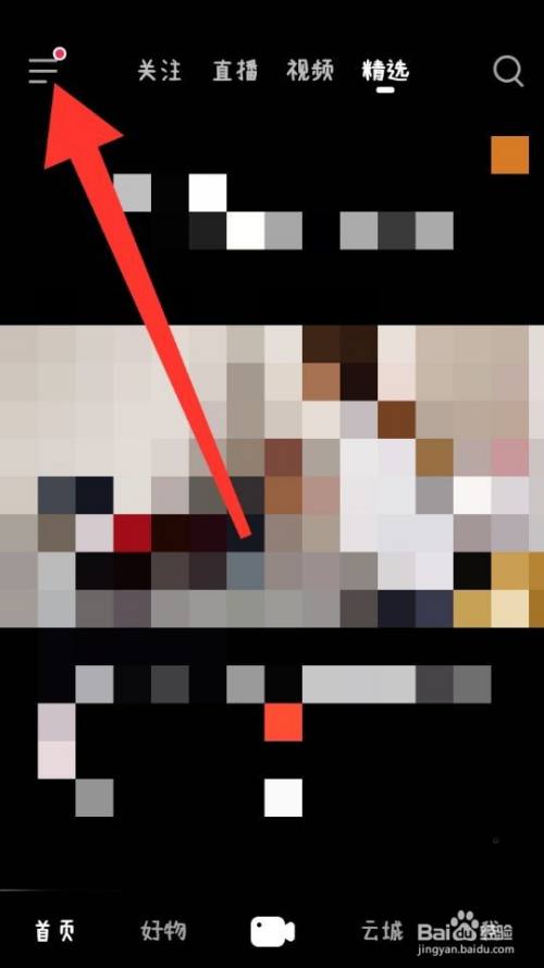 首先打开抖音火山版,点击首页左上角的三条白色横杠。
