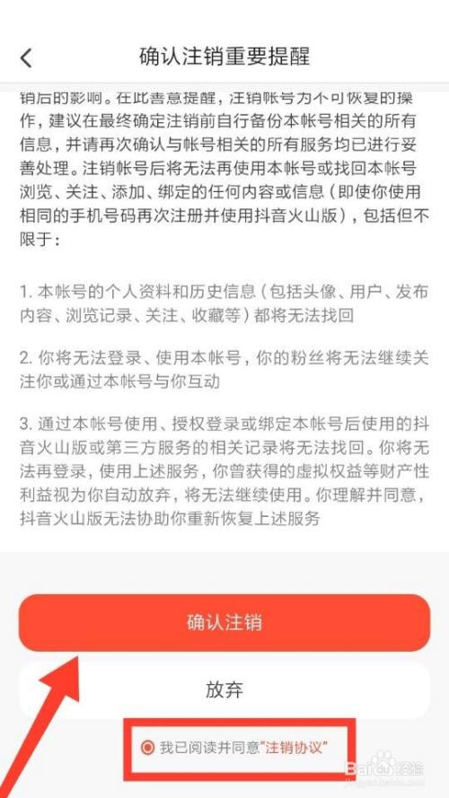 最后点击同意”我已阅读并同意注销协议“,再点击”确认注销“就可以了。