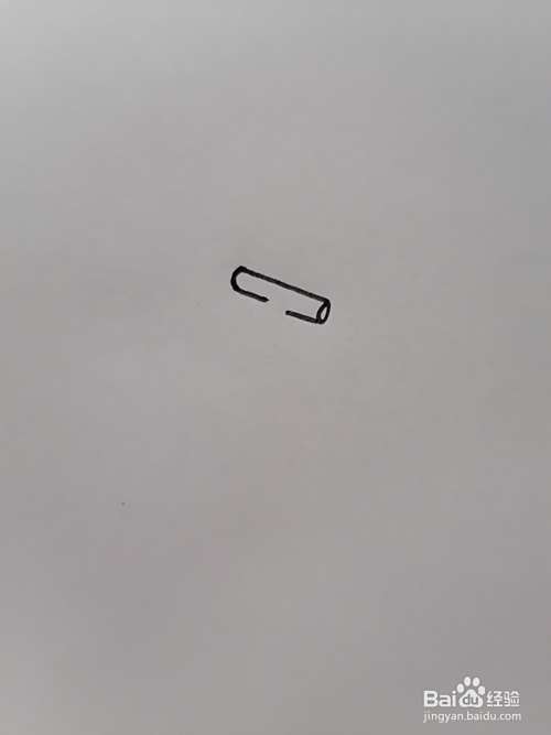 首先在纸上画一个短圆柱,在中间画一个长圆柱