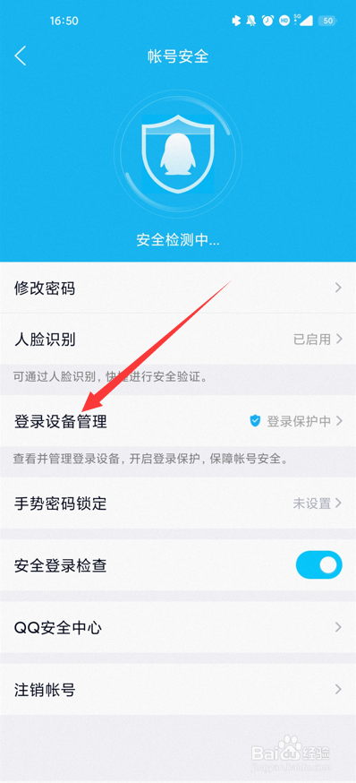 在帐号安全界面找到【登录设别管理】,点击进入。