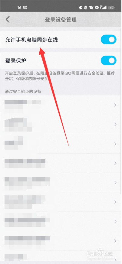 在设备管理中开启【允许手机电脑同步在线】功能,在帐号信息下即可看到电脑在线的提示。