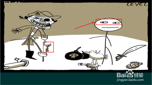 通关方法:点角色的眼,让他哭博取同情。拿到钥匙,点击钥匙,在点锁孔。