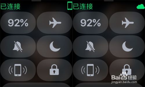 控制中心。在Watch OS 3.0中,有了类似iOS那样的Dock控制中心。用户从屏幕底部上滑便可以呼出控制中心,按压则可以在各个板块之间切换。在控制中心,用户可以检查当前设备电量情况、开启飞行模式、锁定手表或控制音乐播放。控制中心中有个绿色的手机标志代表和手机蓝牙连接成功,但是当你关闭手机蓝牙后会发现有一朵绿色的云,这就代表手表和手机处于同一WiFi中,也是可以连接的。