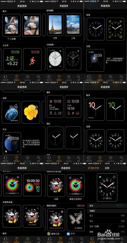 然后是新增的表盘图库,相比最早的系统版本,Watch OS 3.0中又新增了很多表盘款式,完全可以按照自己的意愿随便更换,随意搭配,并且可以把自己手机中喜欢的图片添加收藏,会自动同步到手表中,作为你的表盘图片,如果是多张收藏的话你每次抬腕看到的都会是不同的收藏图片,所有表盘的功能模块都可以自选想要显示的内容,比如天气、计时器、日历等等。而且可以直接在手机中设置表盘,不用再在一块小屏幕上操作了。