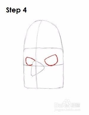 第4步:画出Waluigi的眼睛,它位于水平施工线的顶部。他们基本上是倾斜的半圈。由于视角并且因为它隐藏在Waluigi的鼻子后面,所以将左眼画得更小。