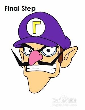 最后一步:对于完成完成的Waluigi绘图,您必须对其进行着色。你可以使用标记,彩色铅笔,甚至蜡笔!颜色Waluigi的帽子紫色与他的眼睛。帽子上的L是黄色的。Waluigi的头发是棕色的,而他的眉毛和小胡子是黑色的。他的大鼻子是粉红色的,他眼睛两侧的区域是浅蓝色的。他的皮肤像公主般的桃色!如果你没有桃子,那就凑合吧!使用浅橙色或粉红色,或任何看起来不错的东西。实验!而已!你现在已经完成了Waluigi的绘画。