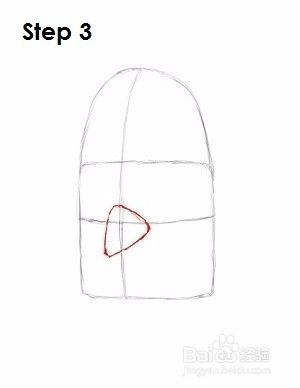 步骤3:稍微低于两条施工线相遇的地方,绘制出一种看起来像一片披萨的三角形形状。这是Waluigi鼻子的基本形状。